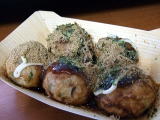 ソース、マヨネーズ風ソース、かつお節、青海苔が入っています。6個入りですが、上の写真は、デジカメ写真を撮る前に一つ食べてしまいましたっ(笑)。あははは〜