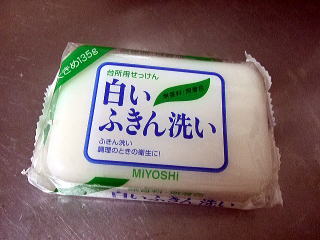 液体状の食器洗い洗剤より、色々な保存料などが少ないと思うのです、台所用石けん。台所用石けんを使っている利用者さんもいます。私も家で使うようになった石けんです。